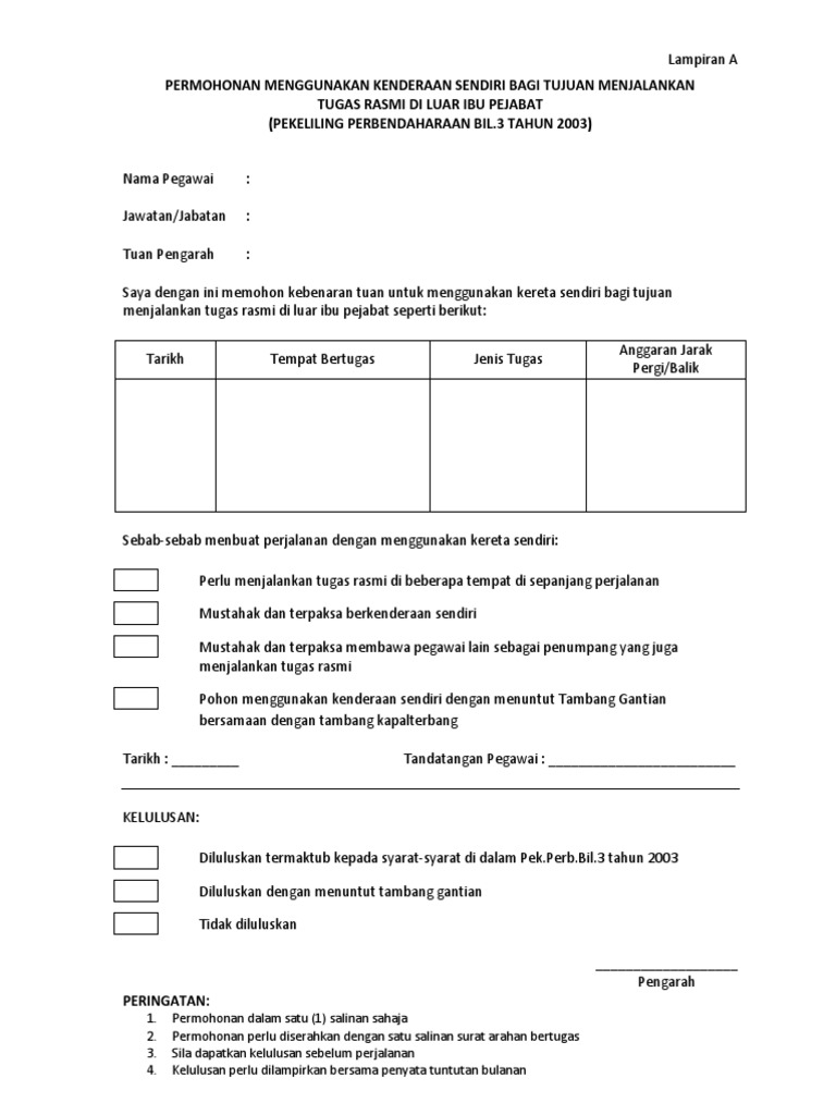 Surat Kebenaran Menggunakan Kenderaan Sendiri Baru Letter Website